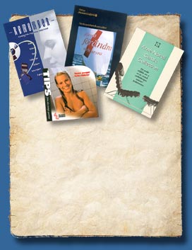 Annonser, broschyrer, visitkort, loggor, affischer, nyhetsblad ja allt du kan tänka dig.